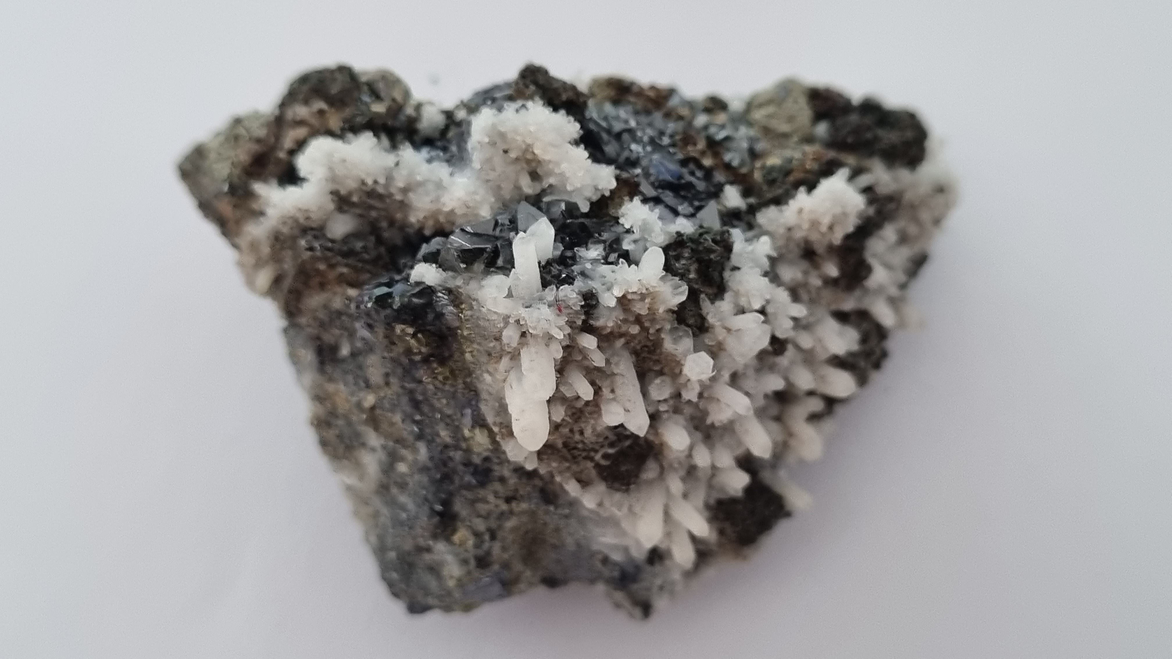 Sfaleriet, pyriet, bergkristal