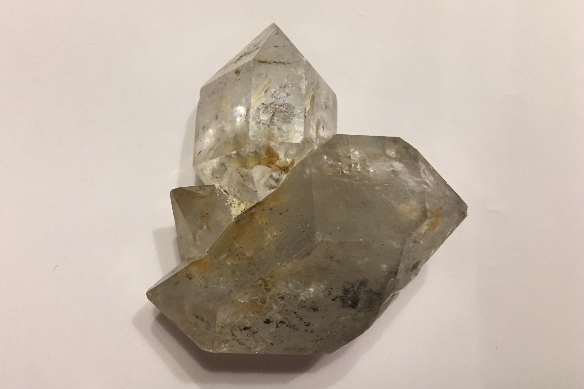 Herkimer style kwarts, pseudohexaginale dubbeleinders. Kristallen hebben een hexagonale habitus.