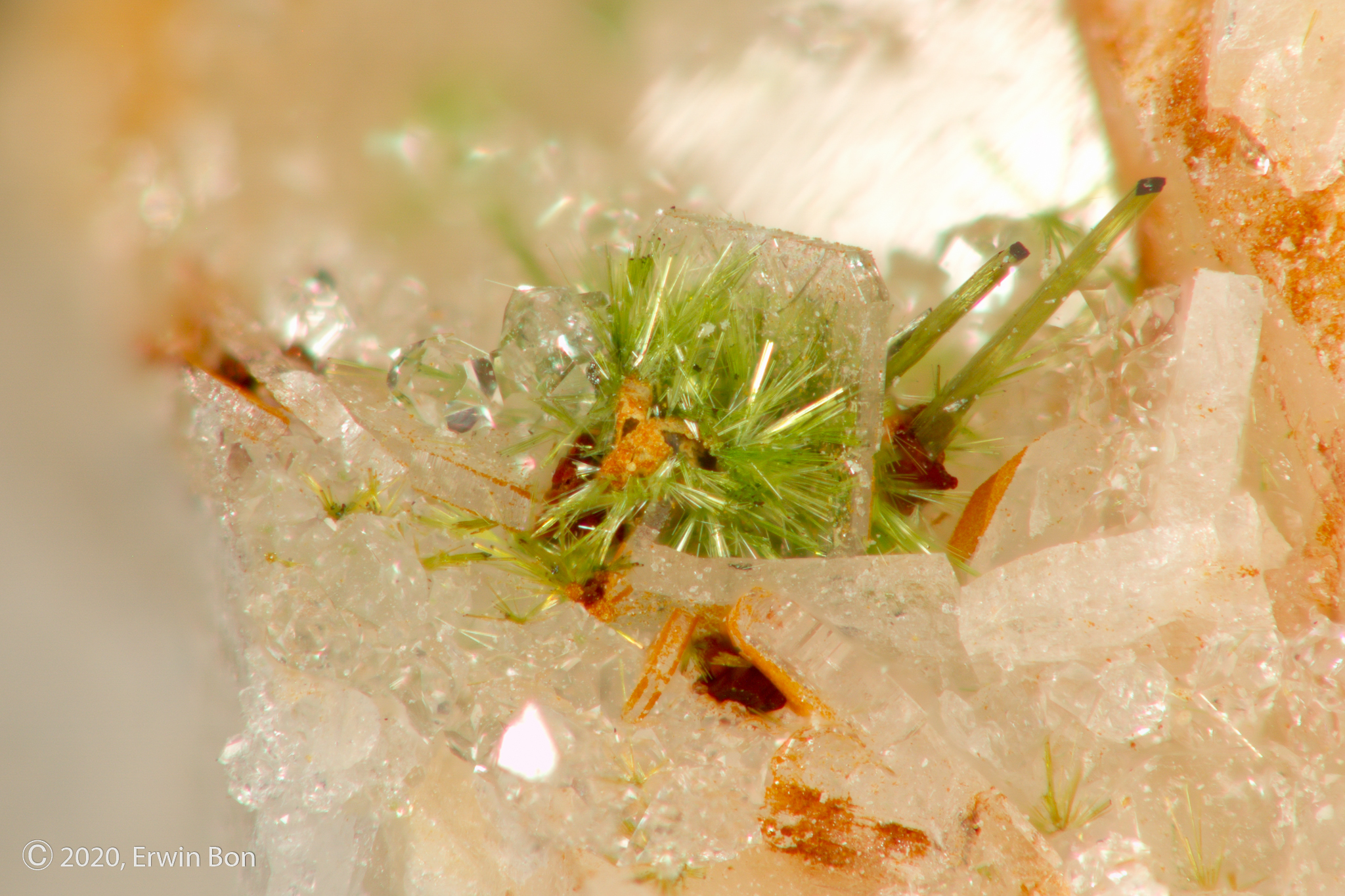 Oliveniet + Agardiet + Bariet + Bergkristal